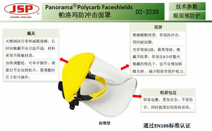 產(chǎn)品名稱:潔適比JSP帕洛瑪防沖擊防飛濺面罩
