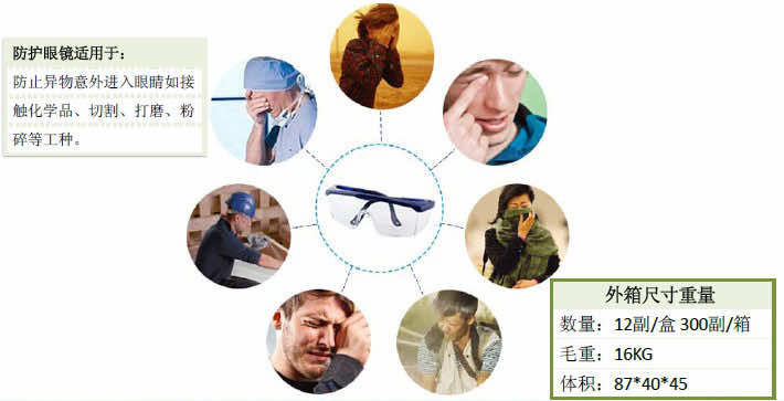 視野寬廣,側(cè)翼保護,模制鼻梁架增加; 舒適感,鏡片防刮擦,鏡腿可收縮; 有藍邊或黑邊可選擇。 通過EN166標(biāo)準(zhǔn)認證。 包裝:12副/盒 、300副/箱
