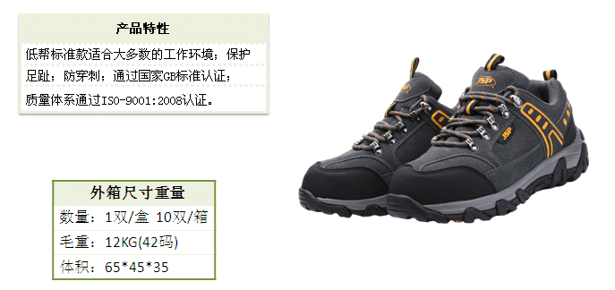 低幫標(biāo)準(zhǔn)款適合大多數(shù)的工作環(huán)境;保護(hù)足趾、防穿刺功能;