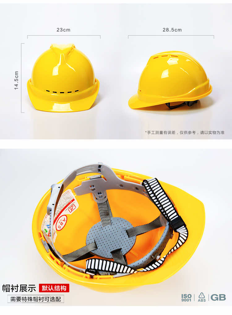 MSA 10172513 V-Gard 豪華型安全帽(黃色PE, 超愛戴 灰針織 滌綸 D)