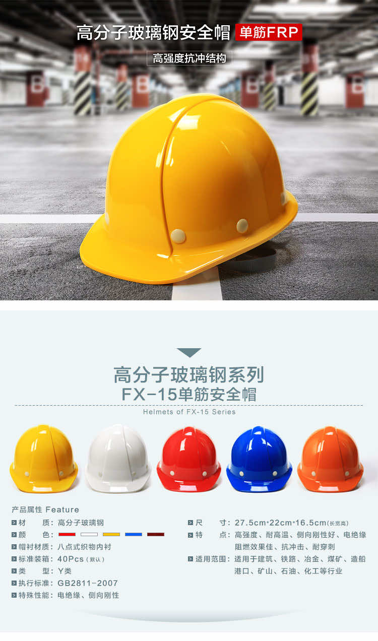 產(chǎn)品名稱:飛訊FX-15單筋高分子FRP玻璃鋼安全帽