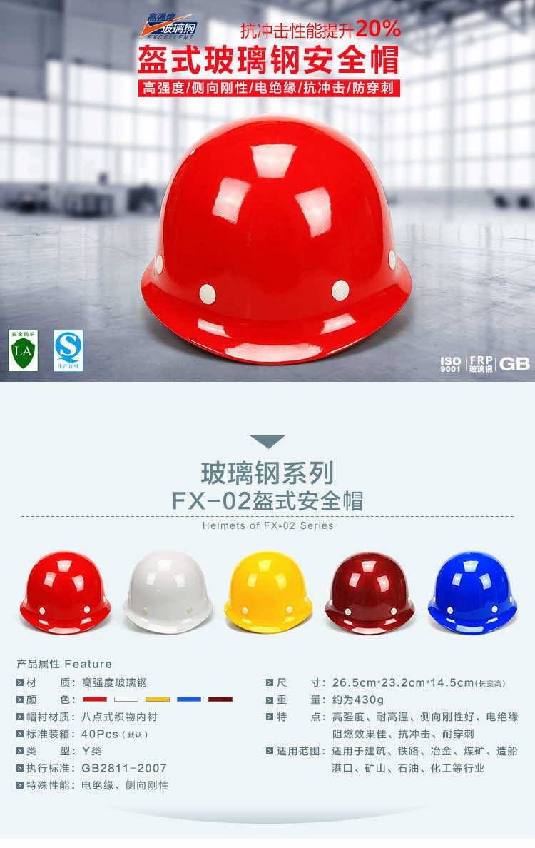 產(chǎn)品名稱:飛訊FX-02盔式玻璃鋼安全帽