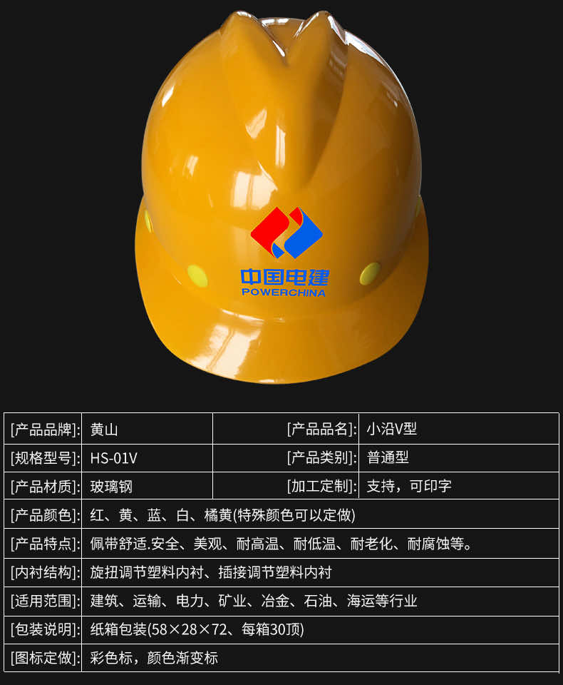 產(chǎn)品名稱:黃山HS-01V玻璃鋼V型國標(biāo)安全帽