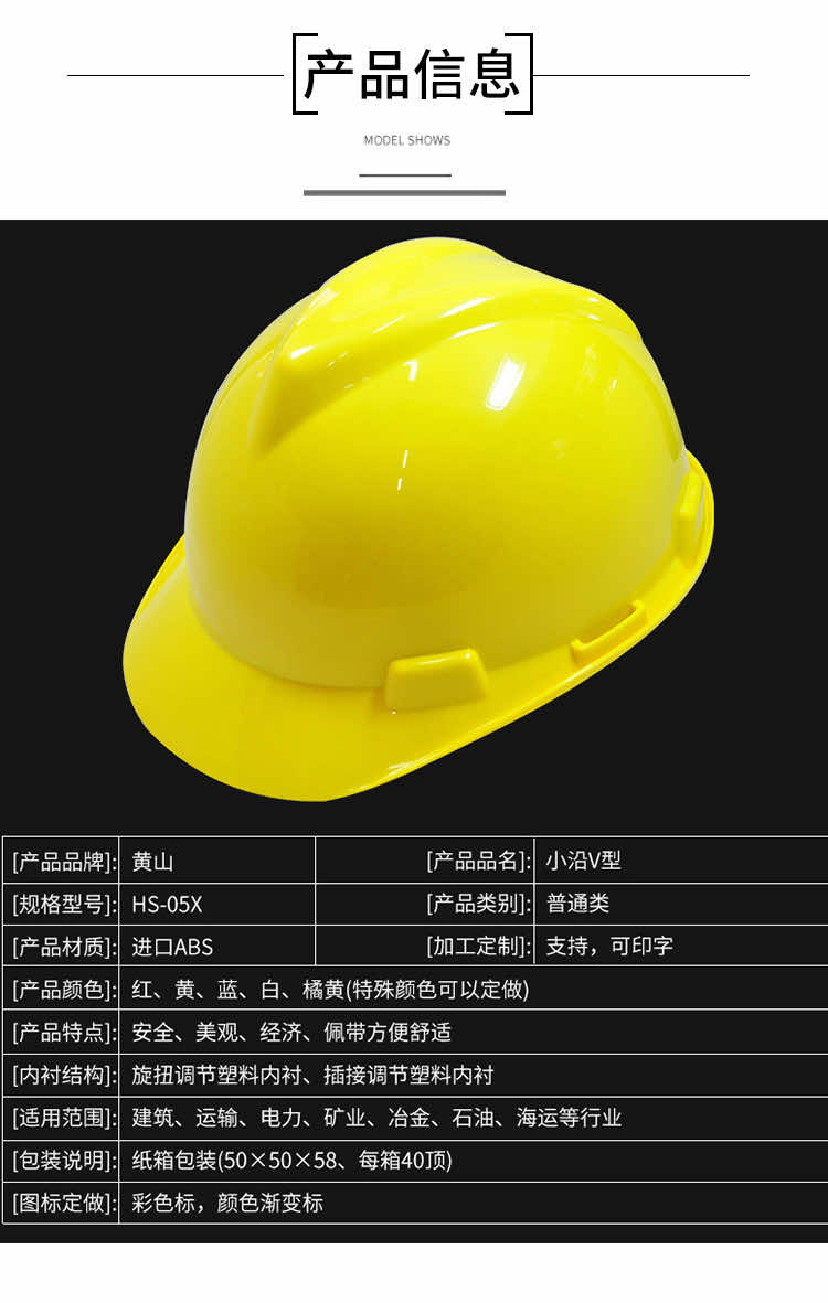 產(chǎn)品名稱:黃山HS-05X防砸加厚V型ABS安全帽