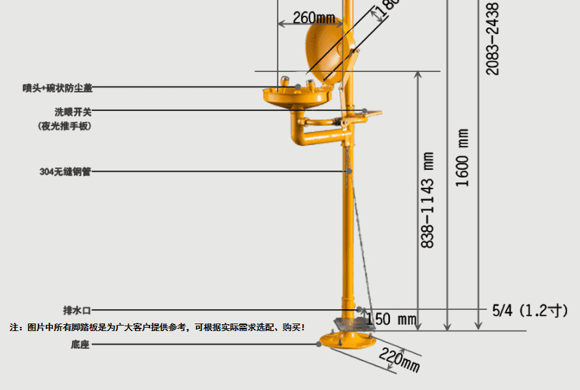 主體材質(zhì):304不銹鋼+ABS防腐涂層 底 座:鋁合金壓鑄 執(zhí)行標(biāo)準(zhǔn):美標(biāo)ANSI Z 358.1-2014