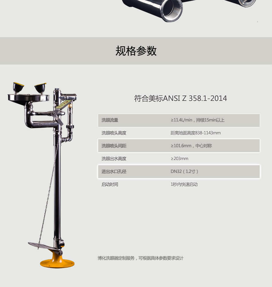 主體材質(zhì):304 執(zhí)行標(biāo)準(zhǔn):美標(biāo)ANSI Z 358.1-2014