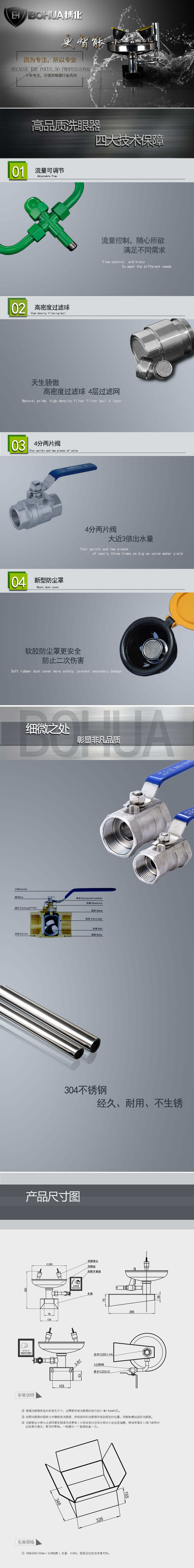 主體材質(zhì):304不銹鋼 執(zhí)行標準:美標ANSI Z 358.1-2014