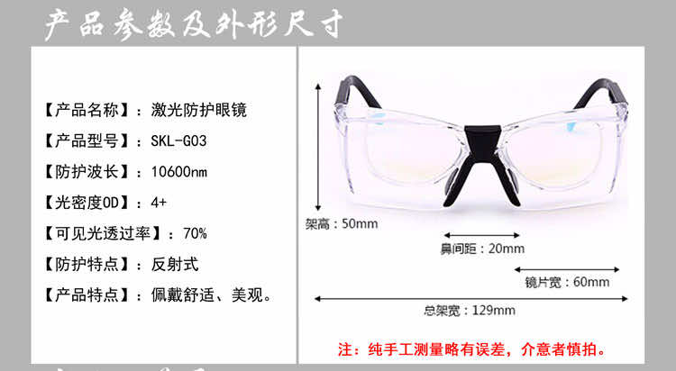 產(chǎn)品名稱:三克SKL-G03雙層鏡片激光防護(hù)眼鏡