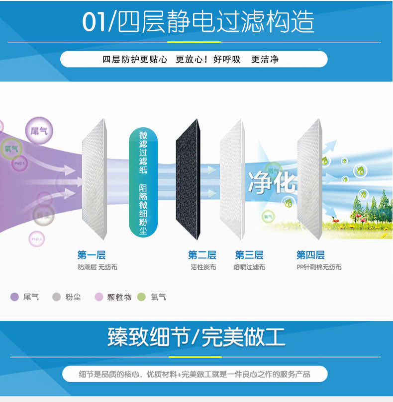 產(chǎn)品名稱:冠樺V-2011平面活性炭防塵口罩