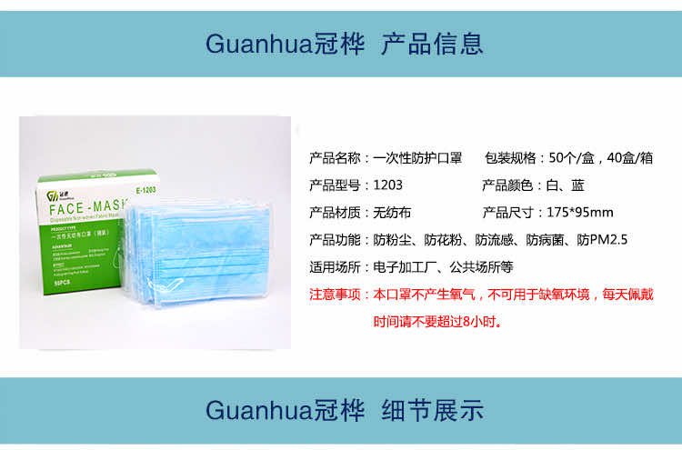 產(chǎn)品名稱:冠樺E1203防霧霾一次性防護口罩