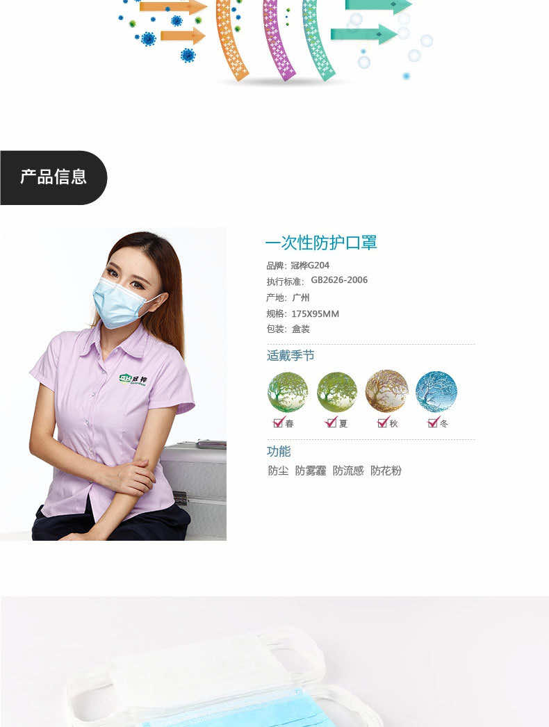 產(chǎn)品名稱:冠樺E1104三層加厚一次性口罩