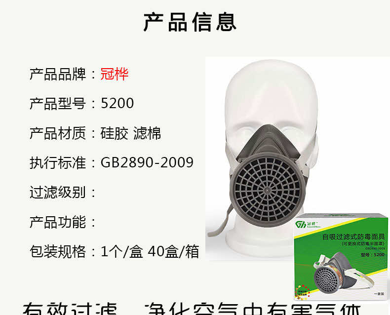 產(chǎn)品名稱:冠樺5200硅膠防毒半面罩