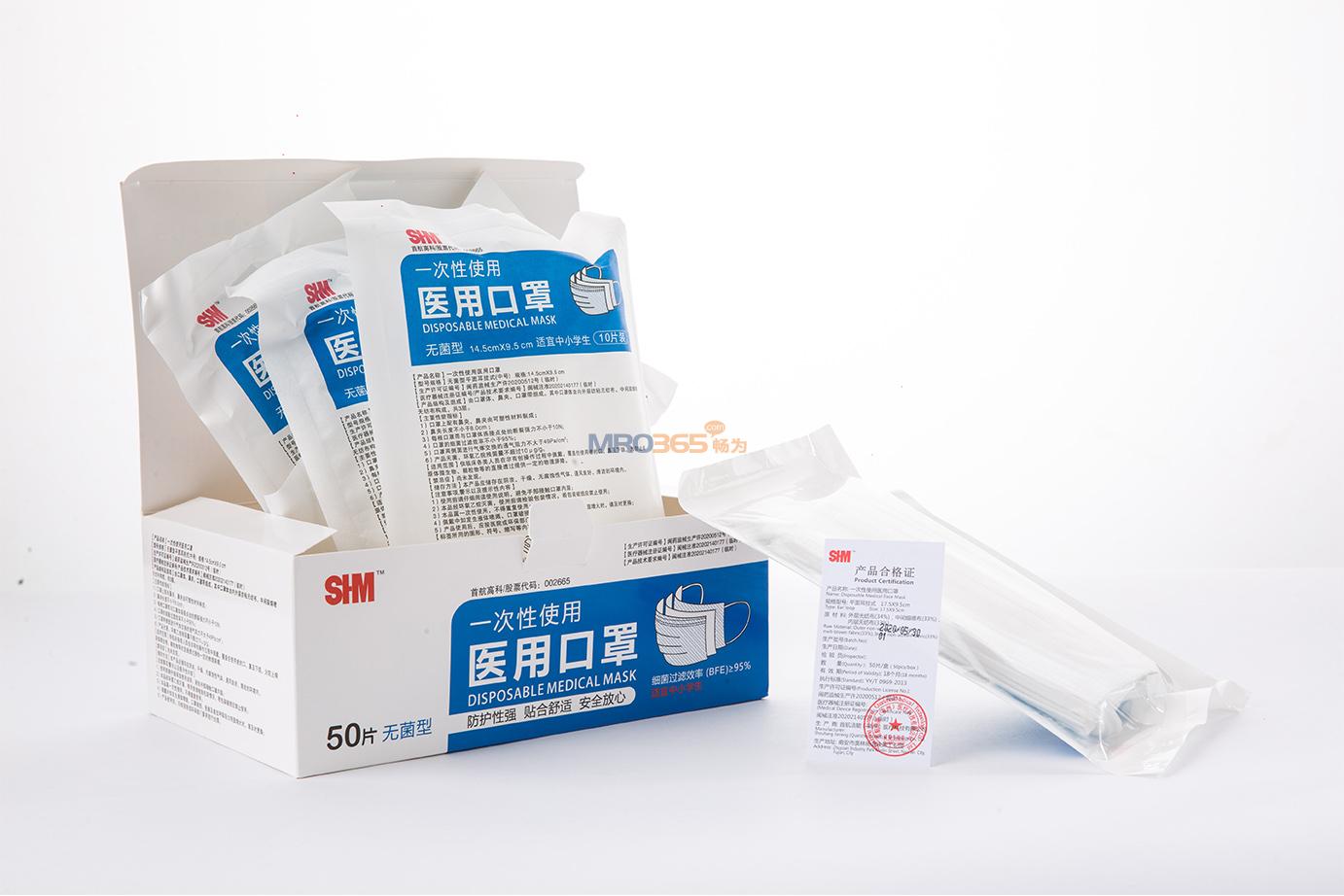首航 一次性使用醫(yī)用口罩 非無菌型 平面耳掛式 17.5*9.5cm(1片/包,50包/盒,40盒/箱)