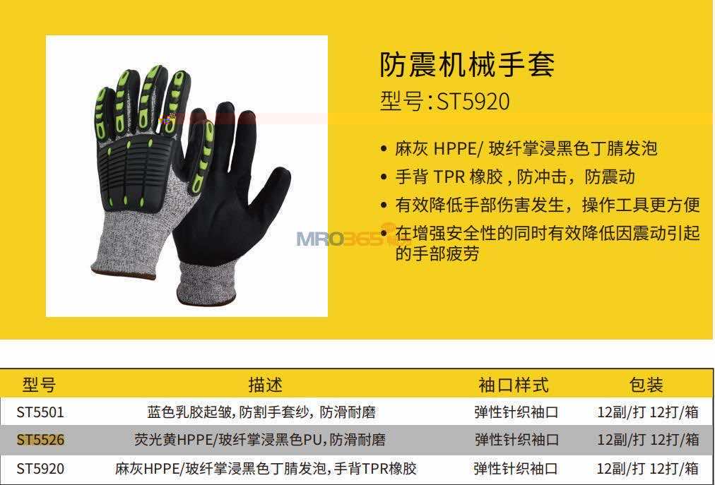 史丹利 ST5920-GY-SIZE 防震防割手套