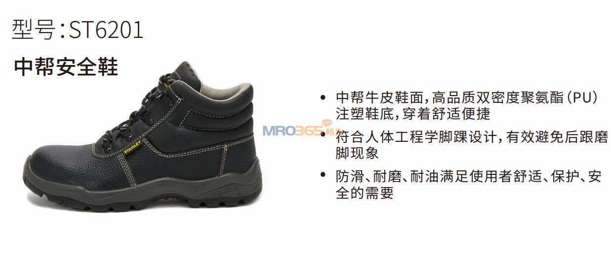 史丹利 ST6205-S1P-SIZE中幫安全鞋(中幫壓花牛皮,雙密度PU大底;功能:S1P)