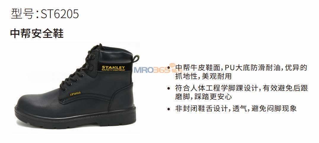 史丹利 ST6206-S1P-SIZE中幫安全鞋(大底:PU/RB,復(fù)合非金屬鋼頭及復(fù)合鞋底,防砸,防刺穿防靜電)