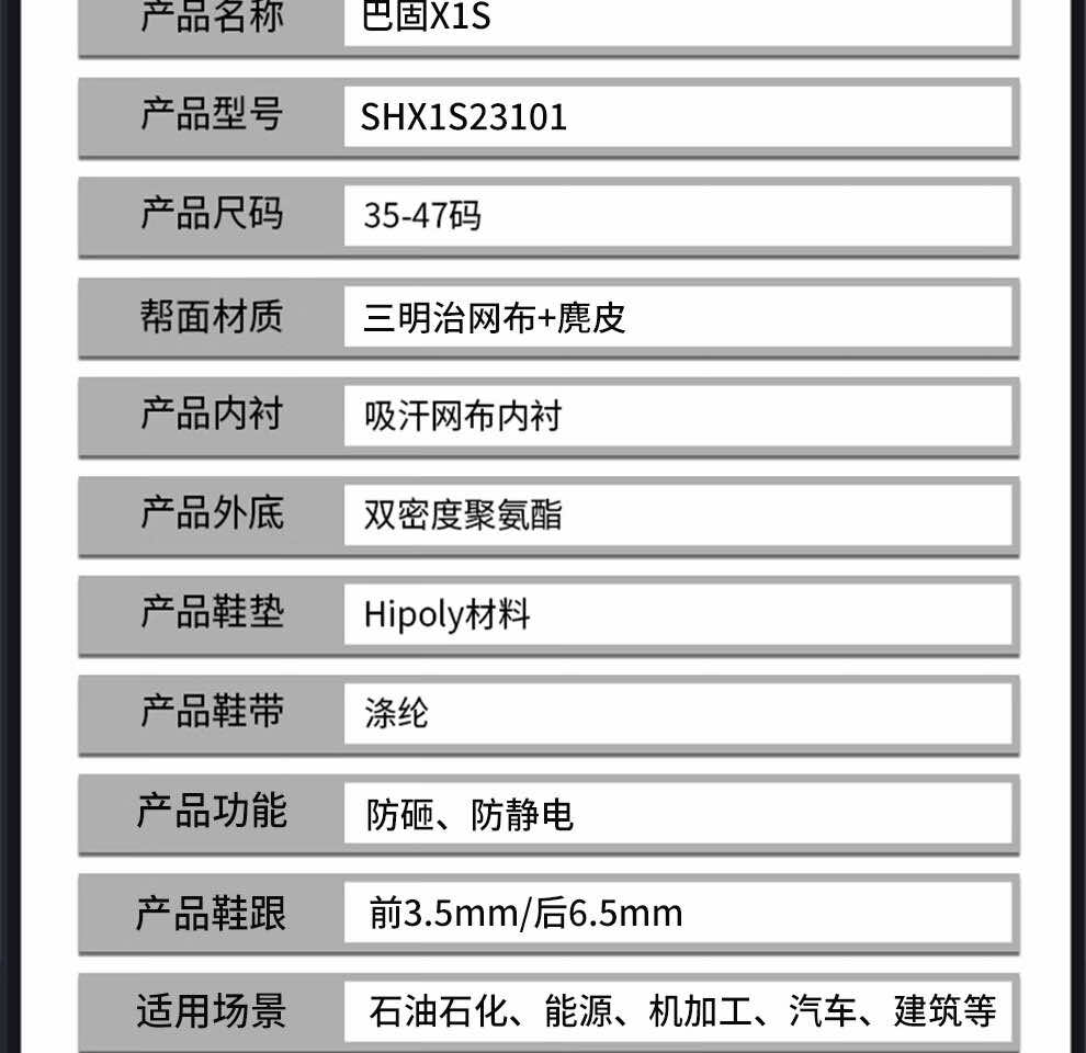 霍尼韋爾 SHX1S23101 巴固X1S系列黑色S1防砸防靜電安全鞋