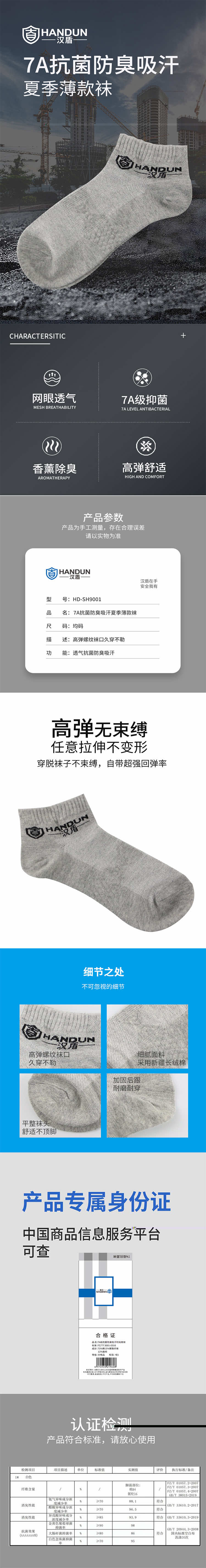 漢盾 HD-SH9001 7A抗菌防皇吸汗夏季薄款襪 1雙/袋