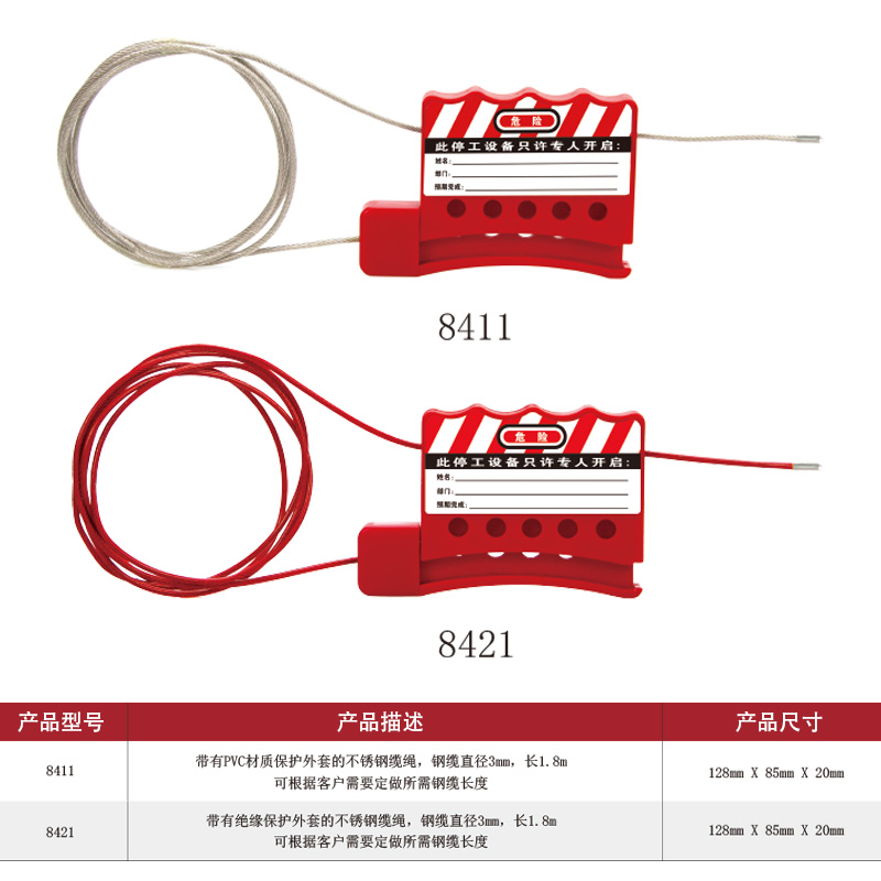 漢盾 HD-SL8238 萬用閥門鎖具 鋼纜長度2m 紅色(1個(gè)/盒 36個(gè)/箱)