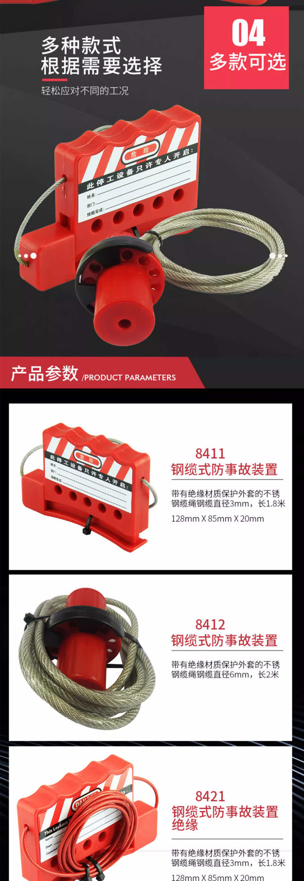 漢盾 HD-SL8415 可調(diào)節(jié)不銹鋼鋼纜鎖具 鋼纜直徑4mm*1.8m(1個(gè)/盒 30個(gè)/箱)