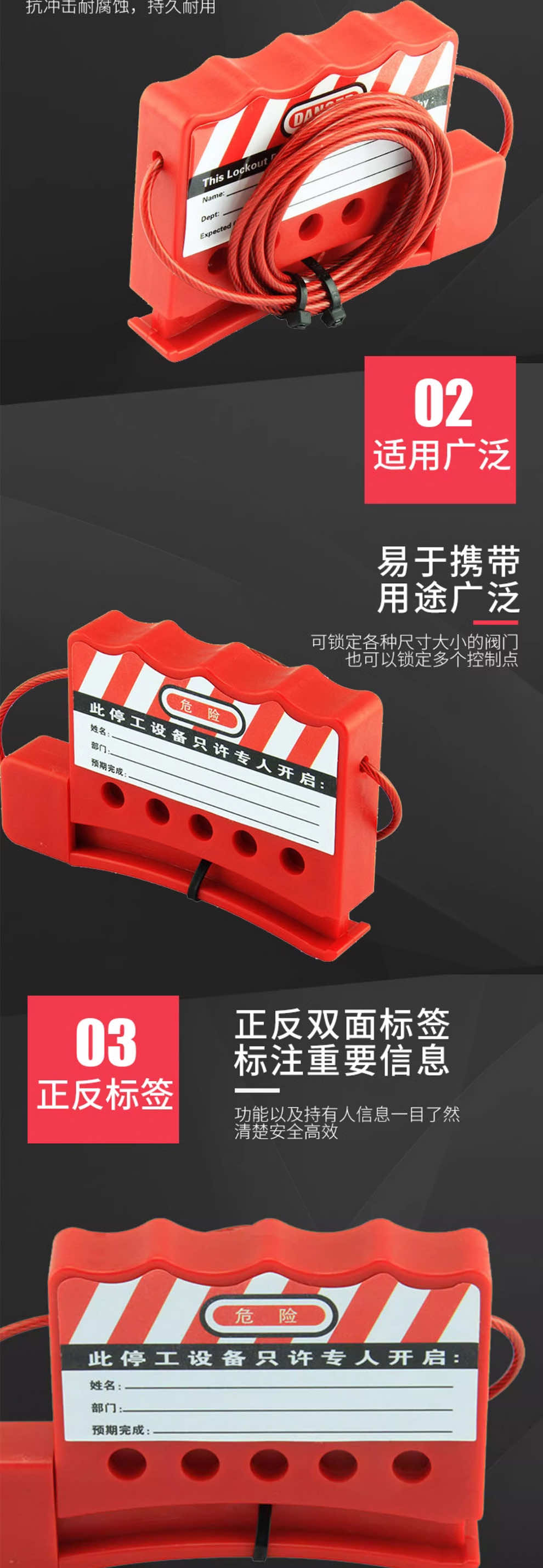 漢盾 HD-SL8237 萬用閥門鎖具 帶可調(diào)節(jié)檔臂 鋼纜長度1.5m 紅色(1個/盒 24個/箱)