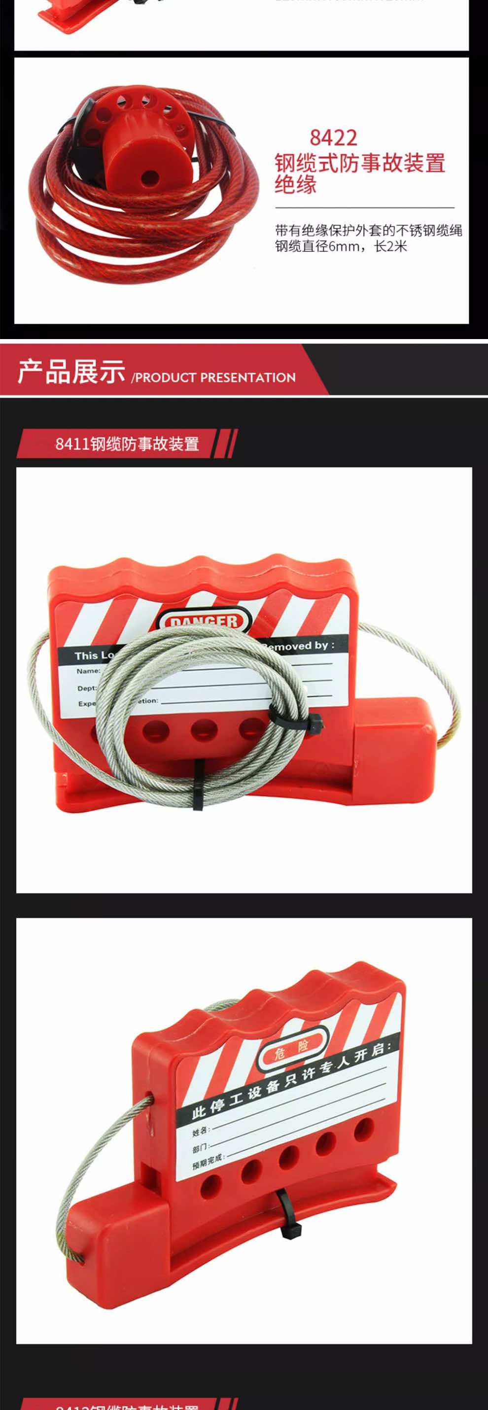 漢盾 HD-SL8238 萬用閥門鎖具 鋼纜長度2m 紅色(1個/盒 36個/箱)
