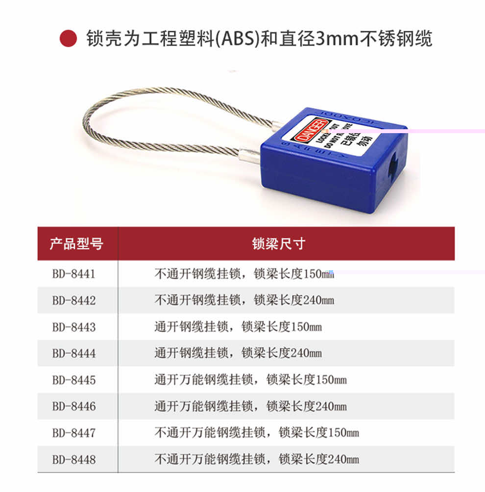 漢盾 HD-SL8441/SL8442 短梁鋼纜安全掛鎖 鎖梁15cm 不通開型(1把/盒 196把/箱)