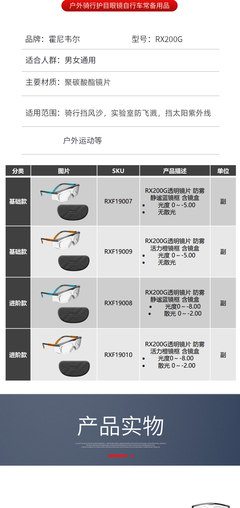 霍尼韋爾 RXF19010 RX200G透明鏡片 防霧 活力橙鏡框 含鏡盒(光度:0~-800,散光:0~-200)