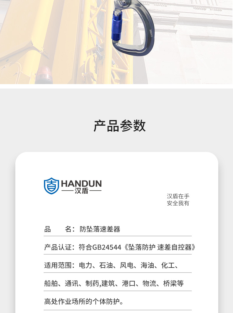 漢盾 HD-FP1510 墜落制動(dòng)器(鋁合金外殼,熱鍍鋅鋼絲繩)(10m)