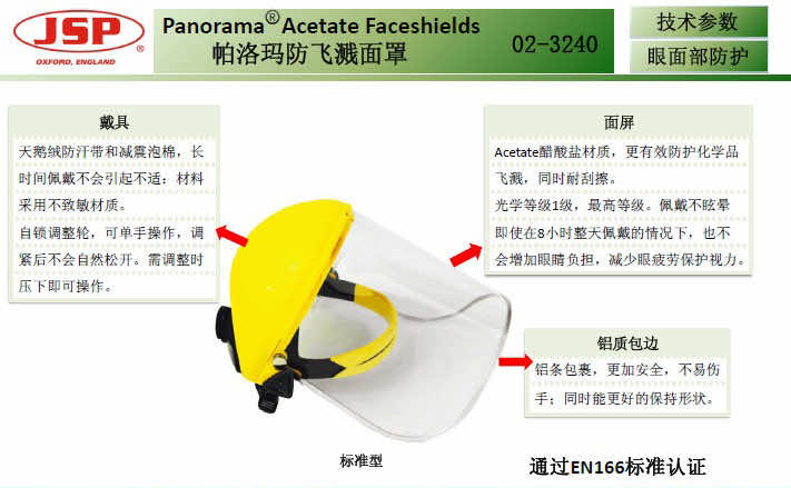 聚碳酸酯面屏(PC材質(zhì))/醋酸鹽面屏(Acetate材質(zhì))兩款面屏可選擇,旋鈕式調(diào)整輪頭帶;