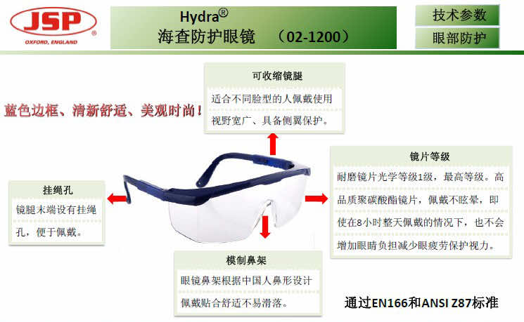 視野寬廣,側(cè)翼保護,模制鼻梁架增加; 舒適感,鏡片防刮擦,鏡腿可收縮; 有藍邊或黑邊可選擇。 通過EN166標(biāo)準(zhǔn)認證。 包裝:12副/盒 、300副/箱