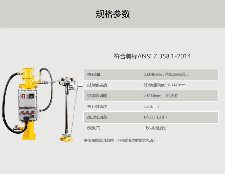 主體材質(zhì):304不銹鋼 防護(hù)等級:IP65 執(zhí)行標(biāo)準(zhǔn):美標(biāo)ANSI Z 358.1-2014