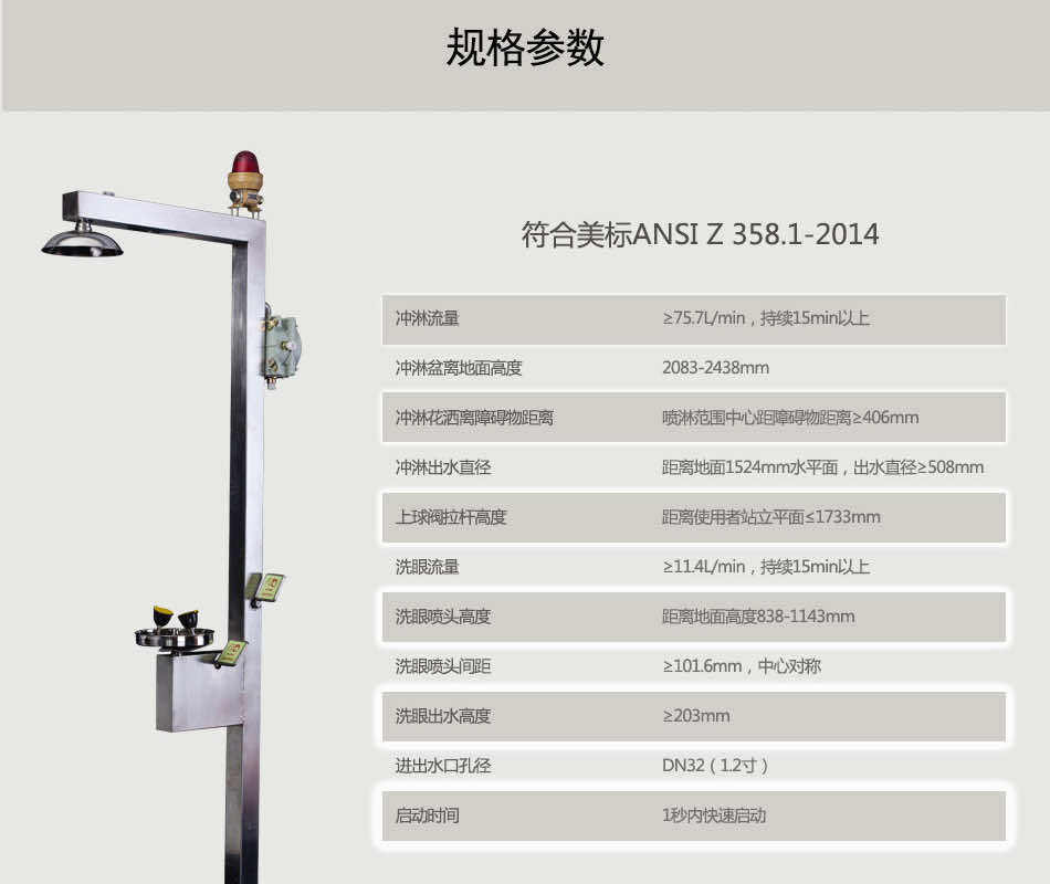 主體材質(zhì):304不銹鋼 底 座:不銹鋼 執(zhí)行標(biāo)準(zhǔn):美標(biāo)ANSI Z 358.1-2014