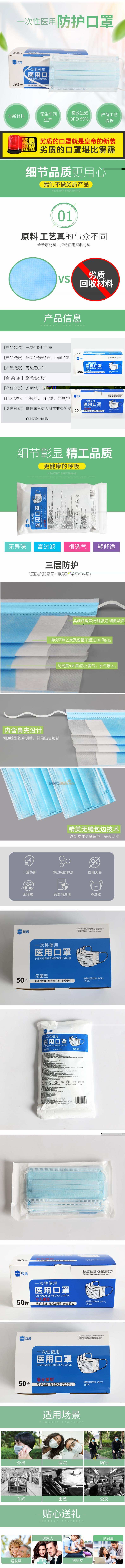 漢盾 三層藍(lán)色一次性醫(yī)用口罩(滅菌型)10片/包,5包/盒