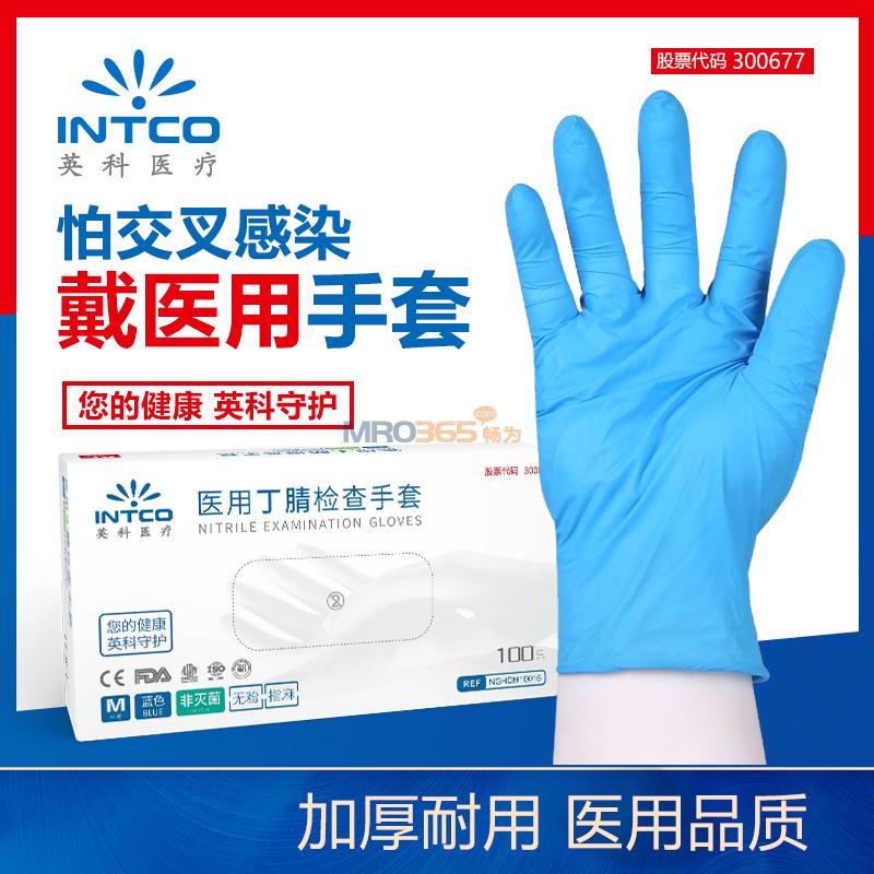 英科醫(yī)療 無粉標準型 醫(yī)用丁腈檢查手套 藍色 M碼 100只/盒 10盒/箱
