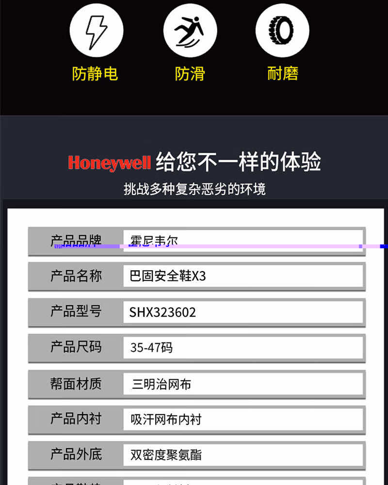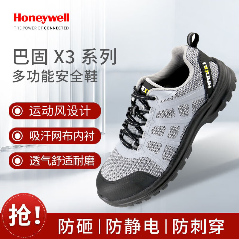 霍尼韋爾 SHX323602 巴固X3系列灰黑S1P非金屬防砸防刺穿防靜電安全鞋
