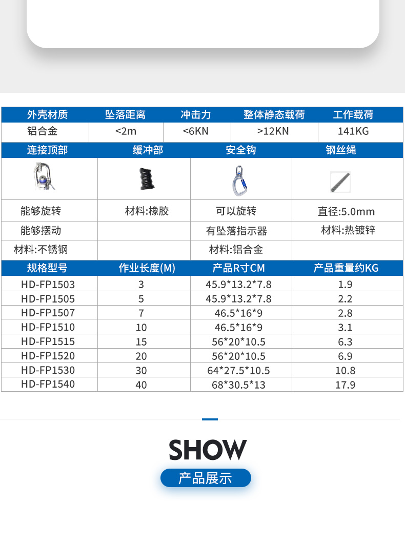 漢盾 HD-FP1515 墜落制動器(鋁合金外殼,熱鍍鋅鋼絲繩)(15m)