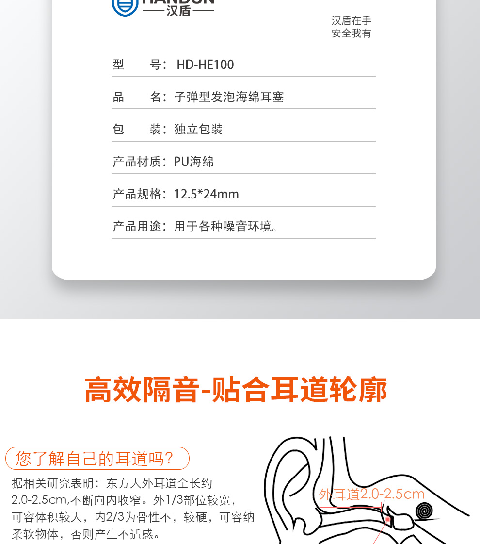 漢盾 HD-HE110 子彈型帶線耳塞(獨(dú)立裝,100副/盒,1000副/箱)
