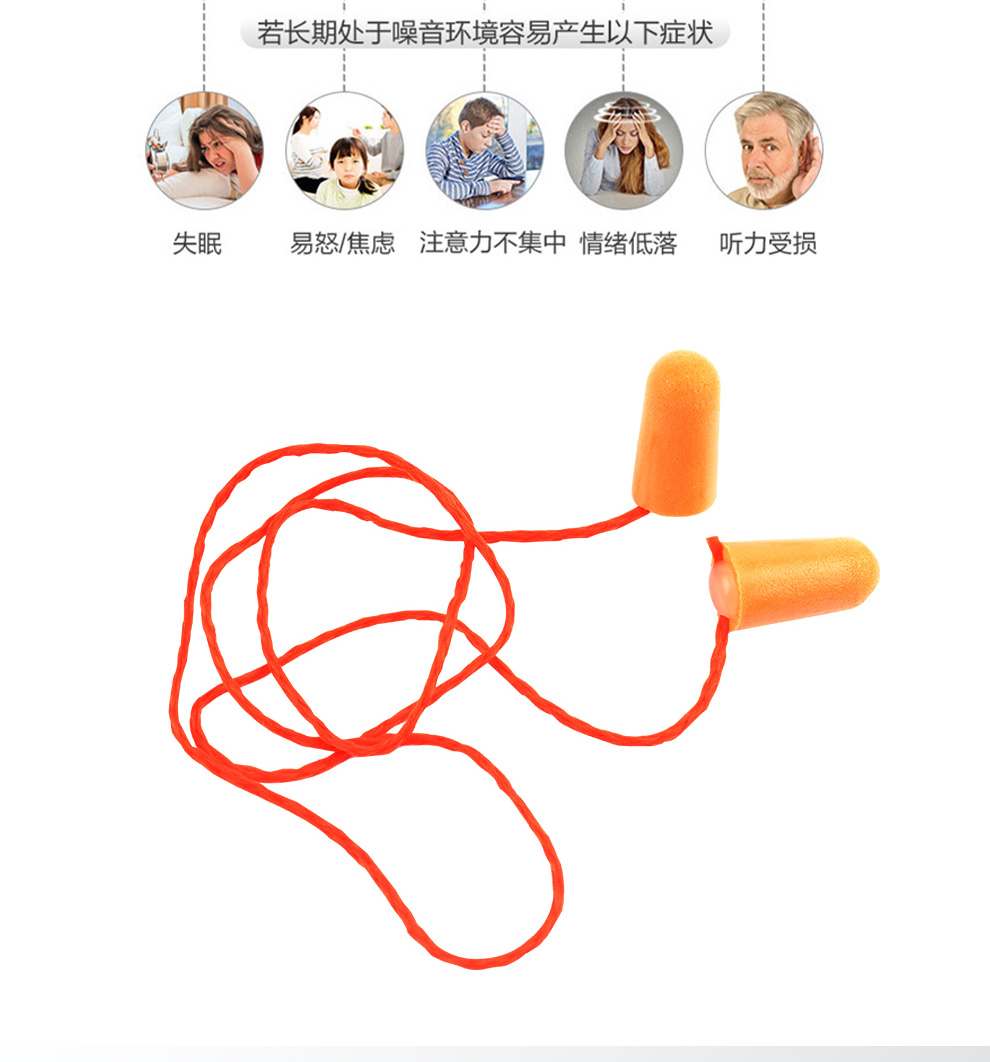 霍尼韋爾 1000107 聚氨酯泡沫Bilsom304子彈型帶線隔音耳塞NRR29