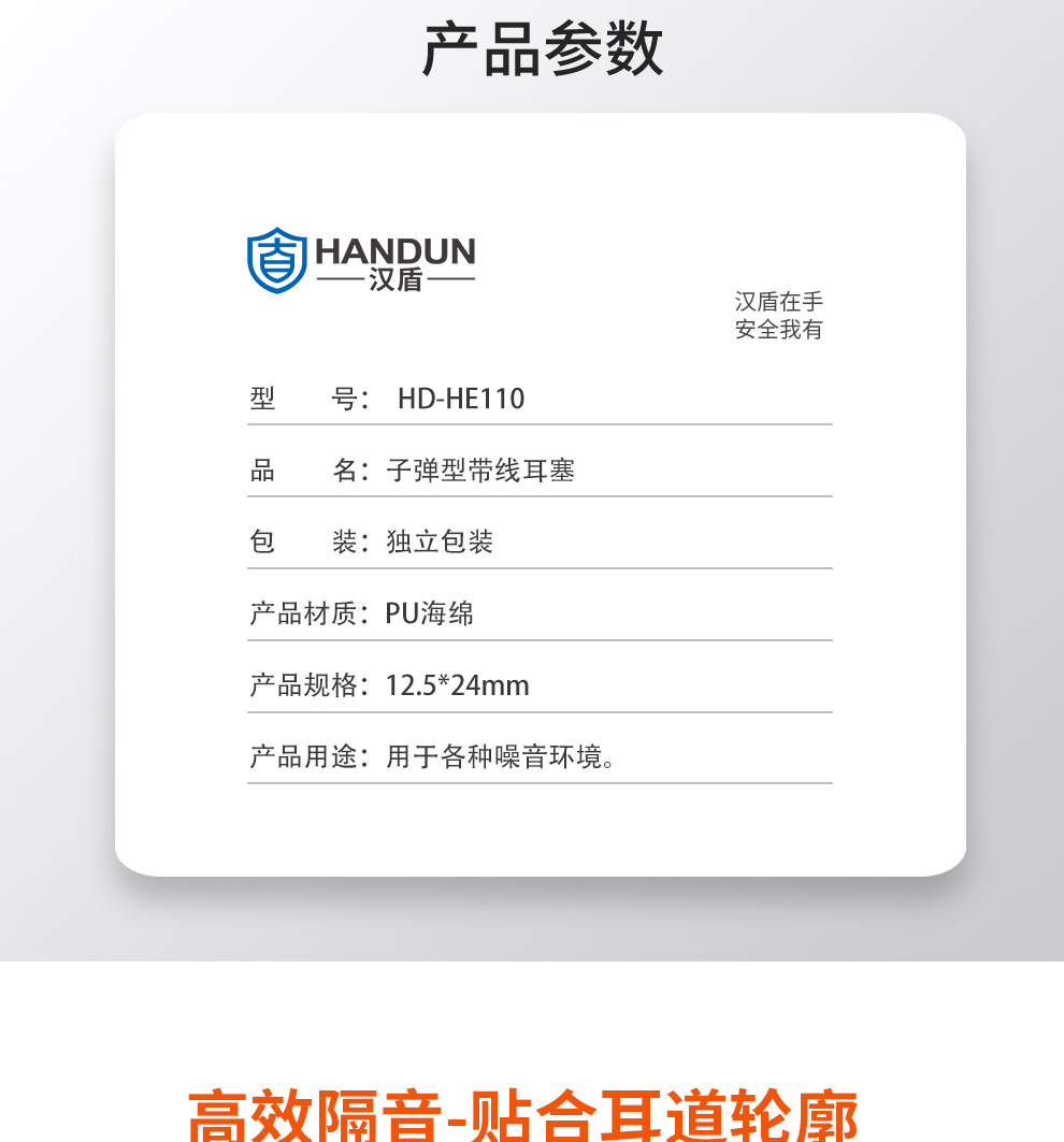 漢盾 HD-HE100 子彈型耳塞(獨(dú)立裝,100副/盒,1000副/箱)