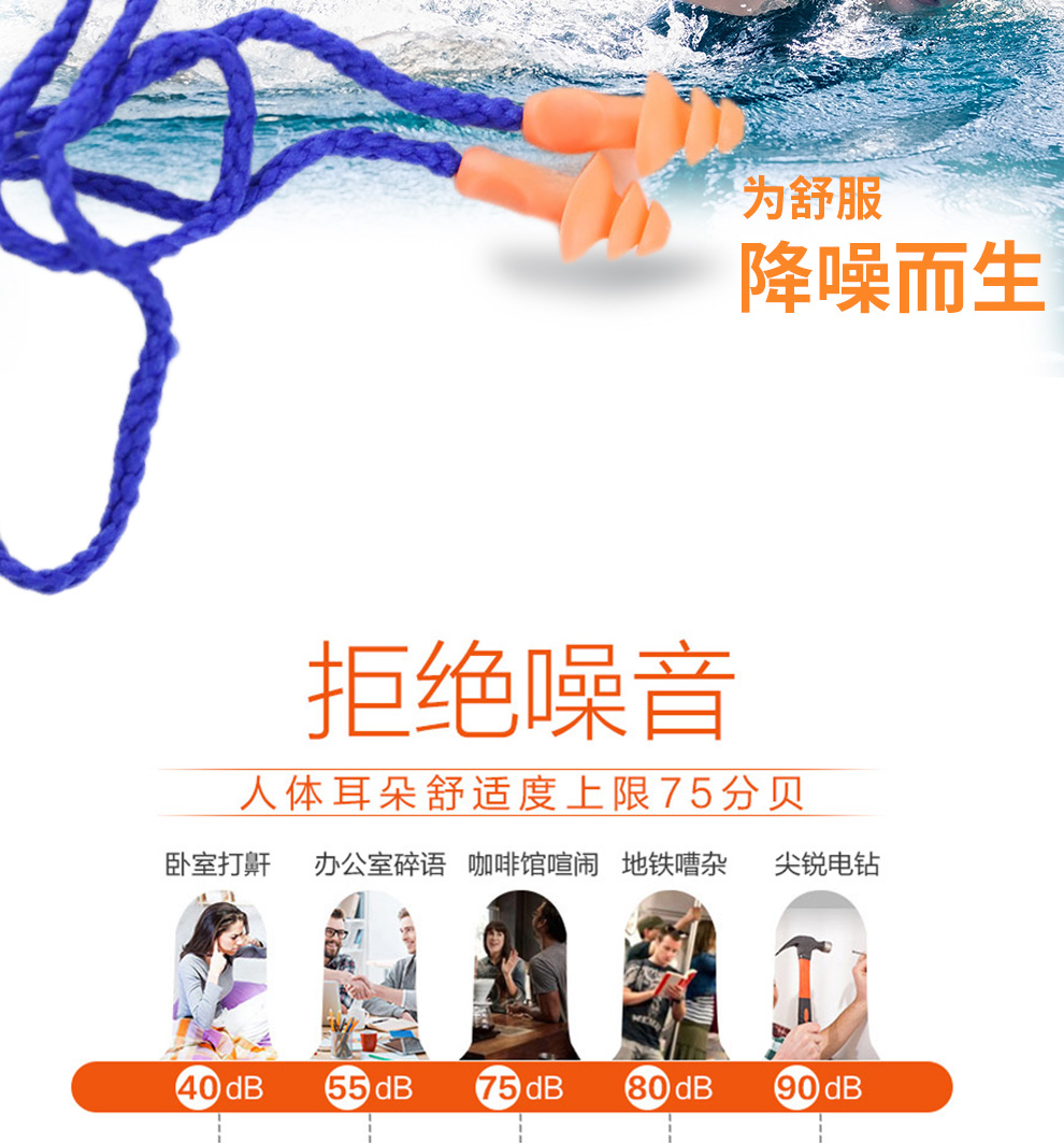 霍尼韋爾QD30 游泳學(xué)習(xí)睡眠防噪聲降噪帶線耳塞