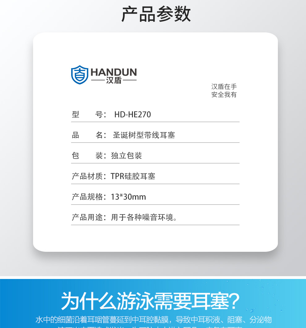 漢盾 HD-HE110 子彈型帶線耳塞(獨(dú)立裝,100副/盒,1000副/箱)