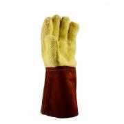 描述 :芳綸毛圈布高溫防切割手套,芳綸毛圈布環(huán)形織法,帶15厘米的抗熱牛皮袖口,羊毛襯里柔軟吸汗,短時(shí)有效耐熱接觸350-400℃/15秒,兼具出色的抗切割、撕裂、磨損力,適用于熱玻璃處理,高溫消毒,脫模熱塑等行業(yè)。